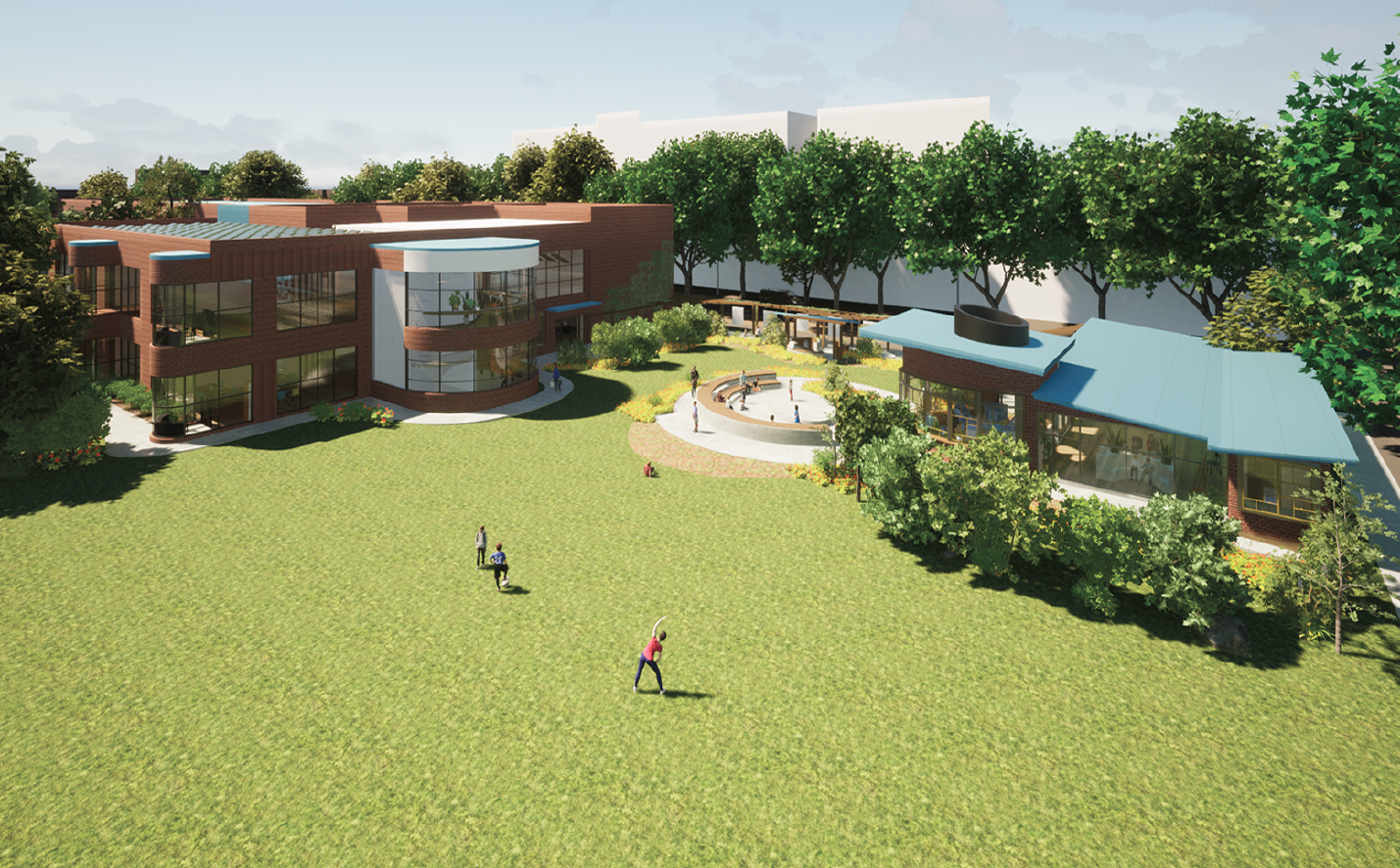 The resulting proposal integrates new fine arts classrooms, a commemorative space, atelier studios, a black box theater, gardens, a well-being pavilion, a transformed library, and dedicated wellness classrooms. These designs each nurture emotional health, creativity, and connection.